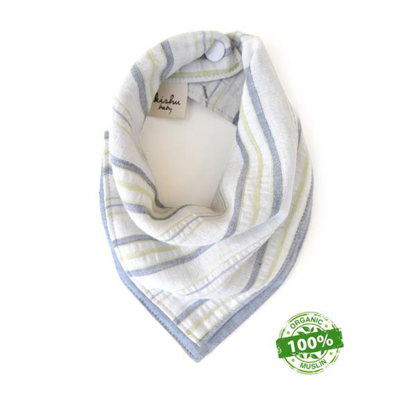 REVERSIBLE 100% organic cotton bandana bib. Made in California from premium imported Japanese muslin. Luxuriously soft and gets softer every time you wash. Lightweight, breathable, durable, and did we mention soft? Adjustable neck size with snaps… no scratchy velcro to irritate your baby's sensitive skin. One size fits most (3 to 24 months).