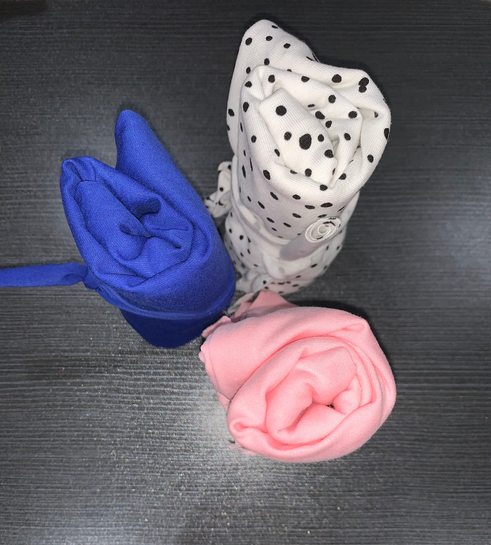 Warning: If you notice your swaddle is moving towards the face, please tie the bottom of the swaddle in a knot if it is to long/big on your baby.
