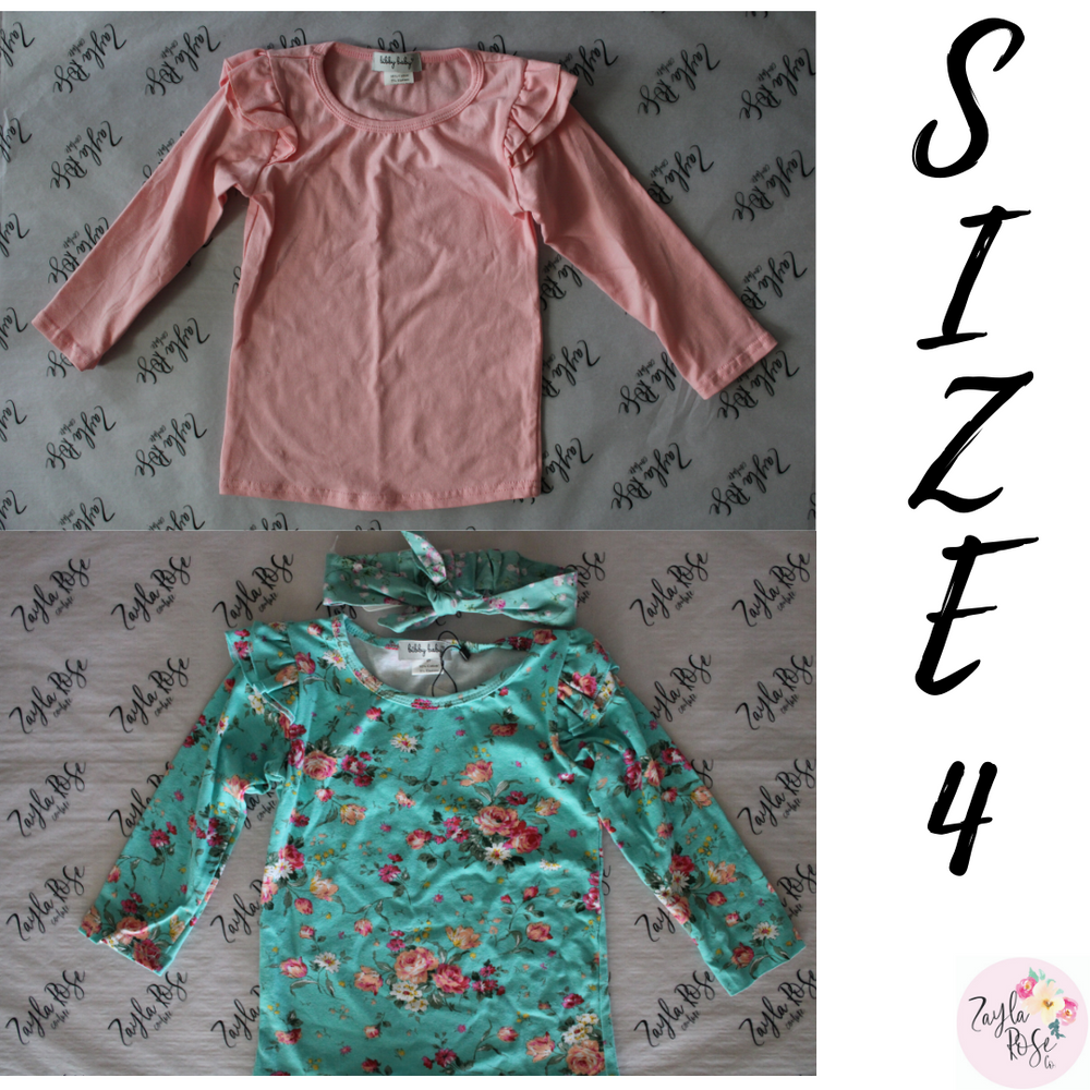 - Turquoise Floral Flutter Long Sleeve Shirt Size 4