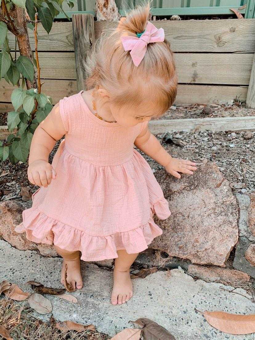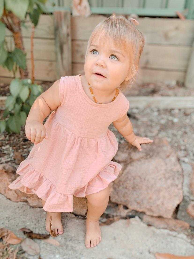 This beautiful Dusty Peach tunic dress is the perfect dress for adventuring Princesses!