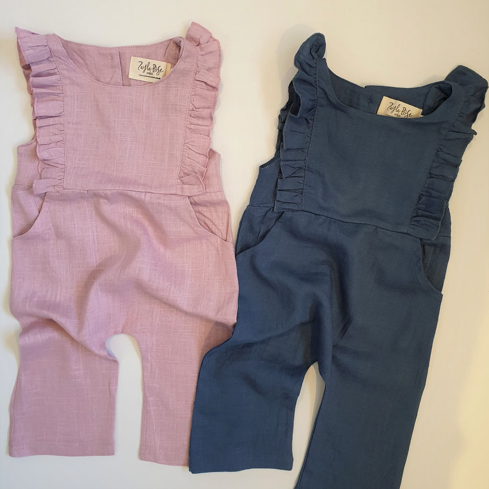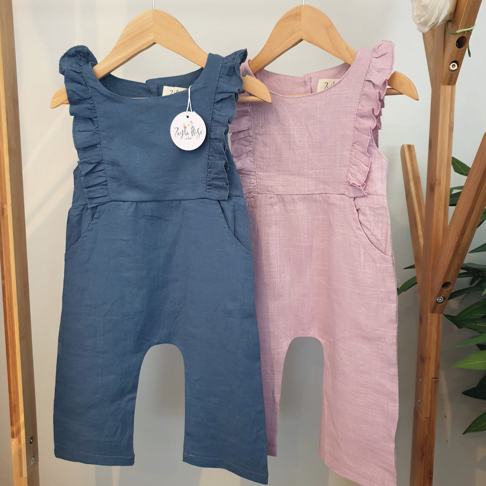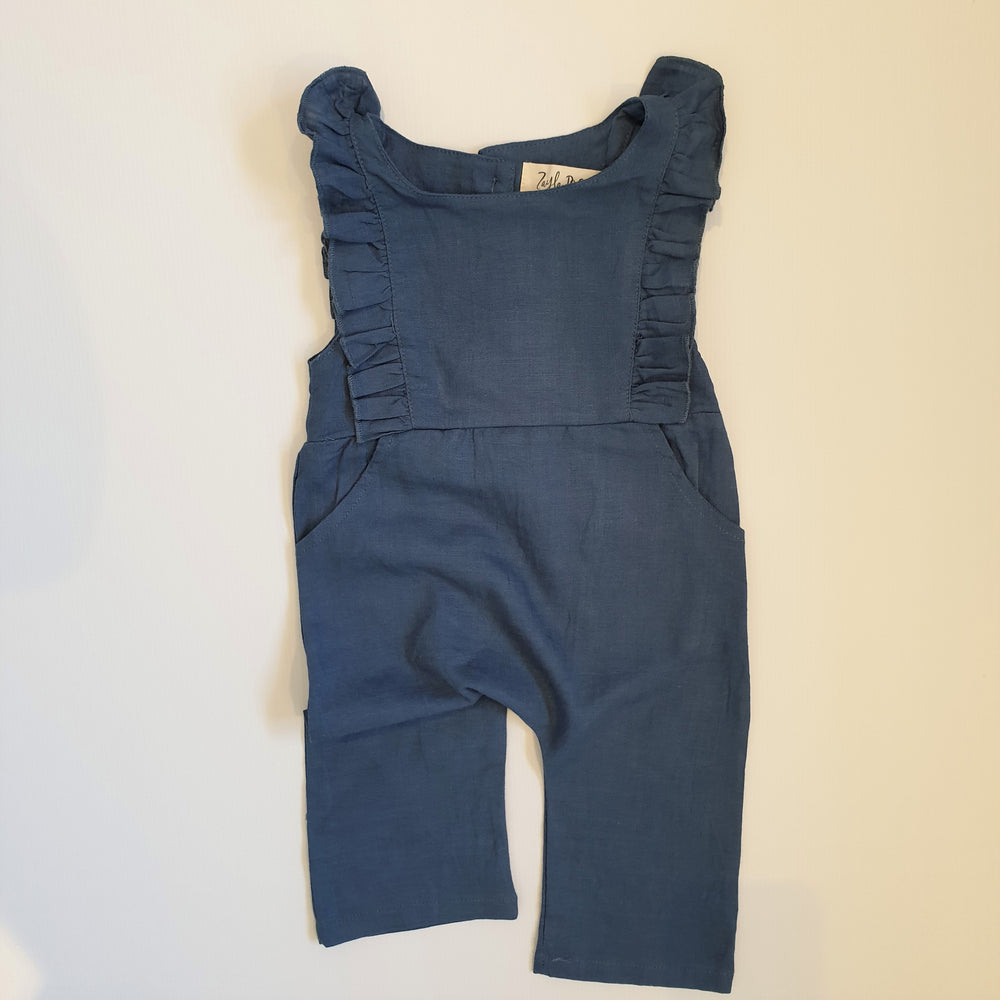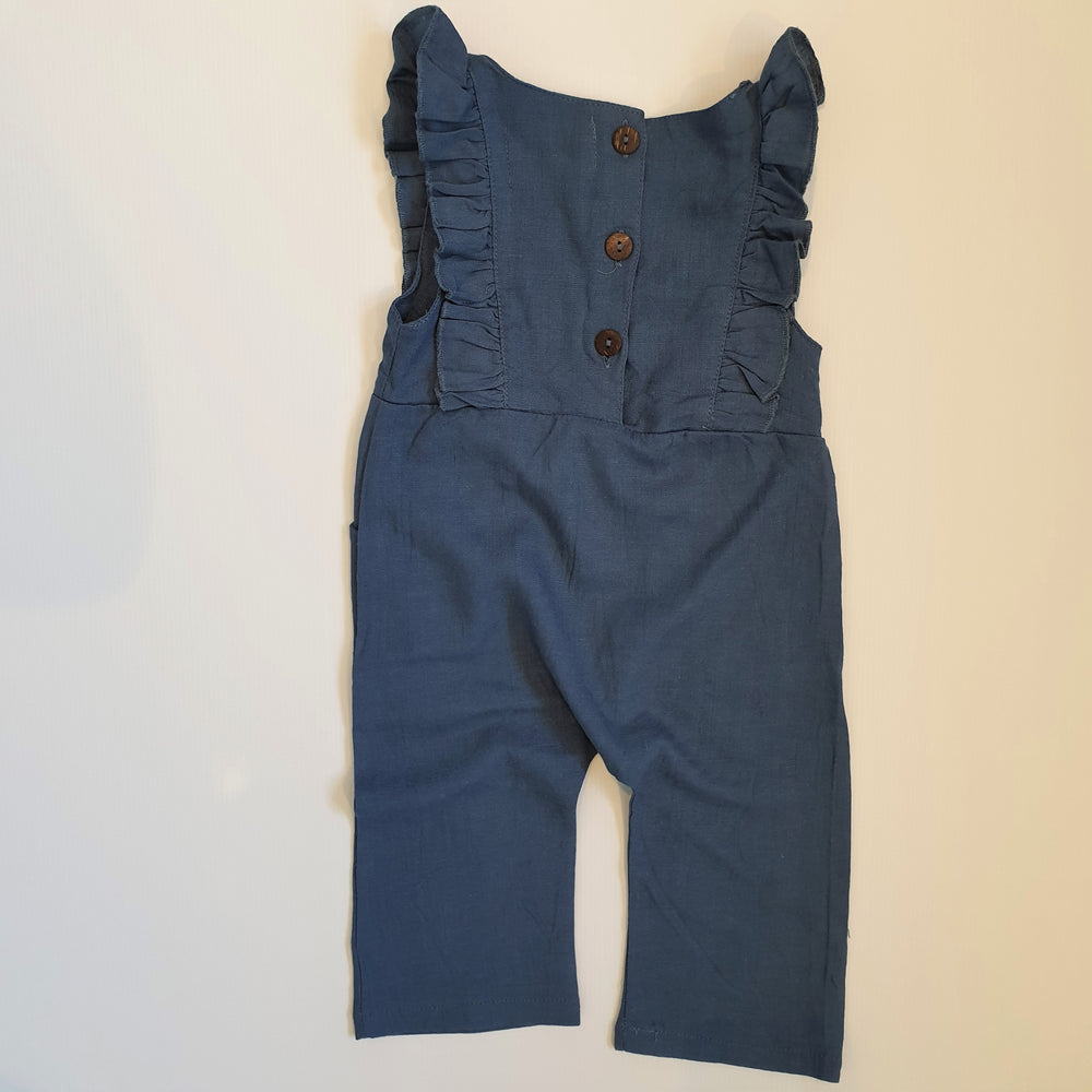Linen Ruffle Jumpsuit | Duck Blue