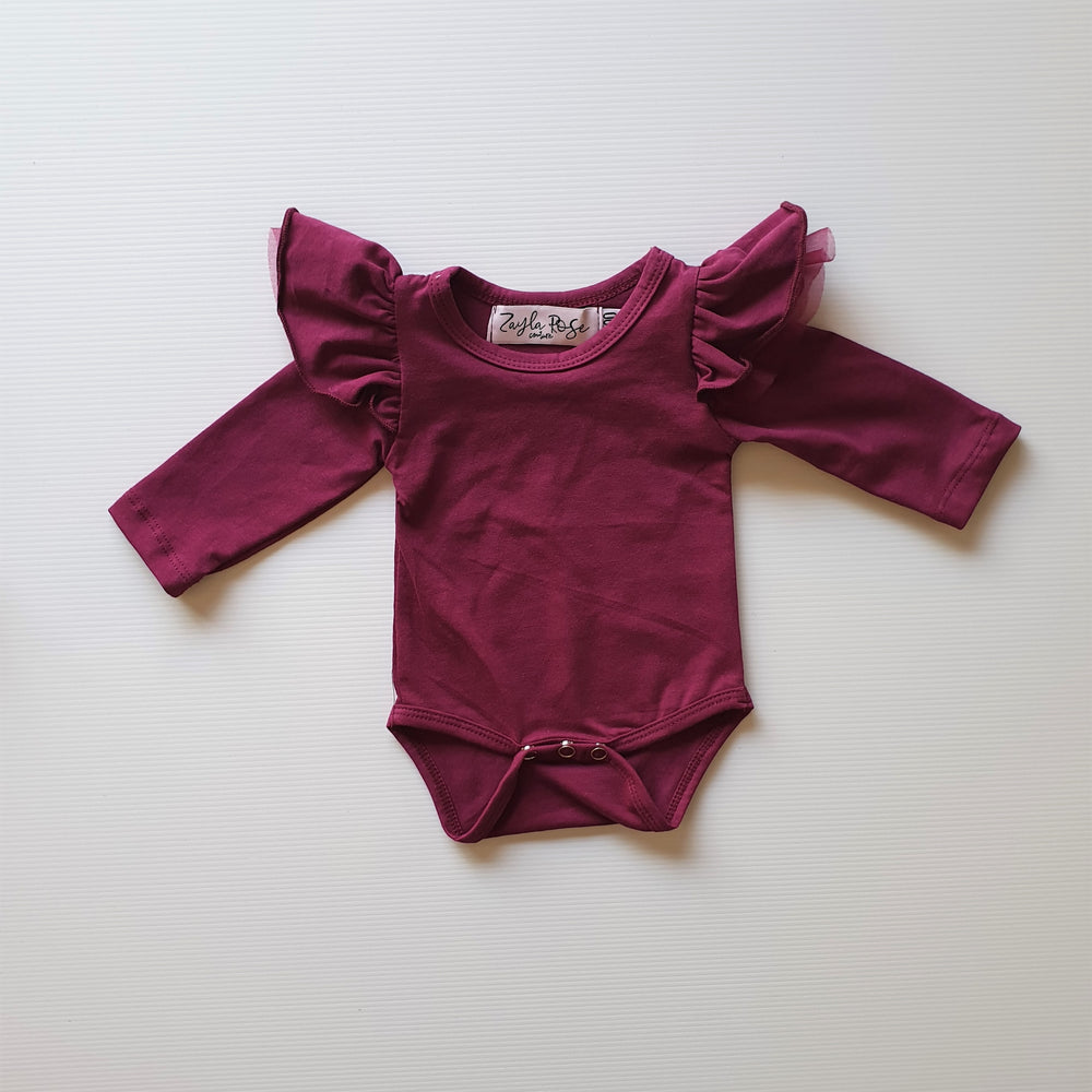 Tulle Flutter Romper / Top L/S - Wine