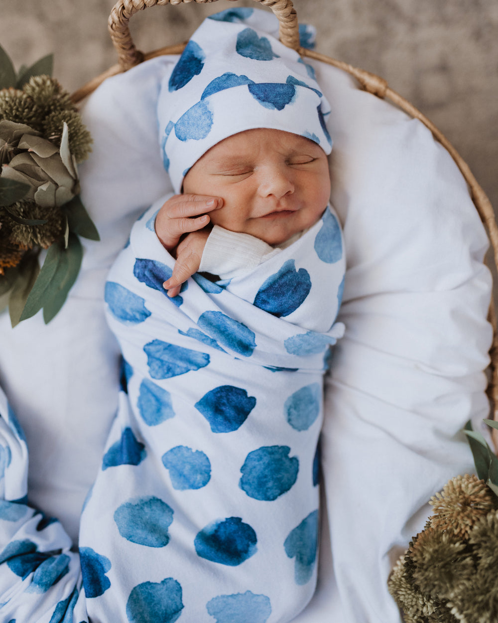 Ocean Skies I Baby Jersey Wrap & Beanie Set