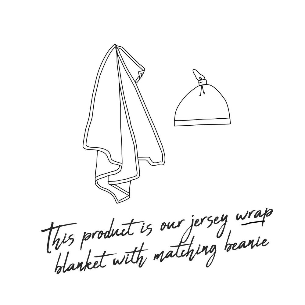 The Cotton Jersey Wrap is soft and stretchy, it moves and stretches with baby. This wrap comes with a matching knotted beanie.