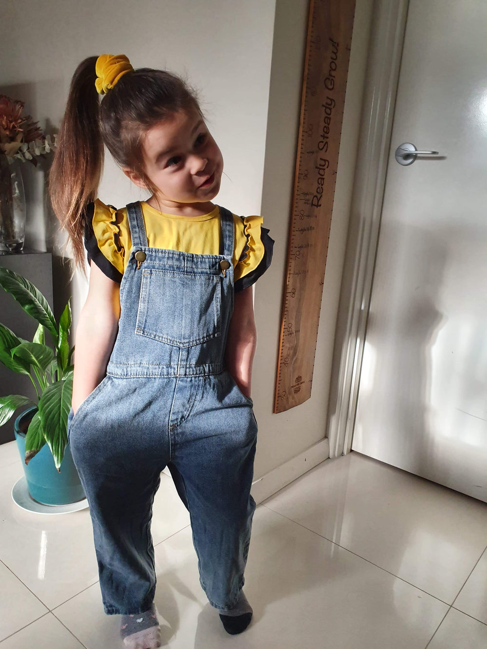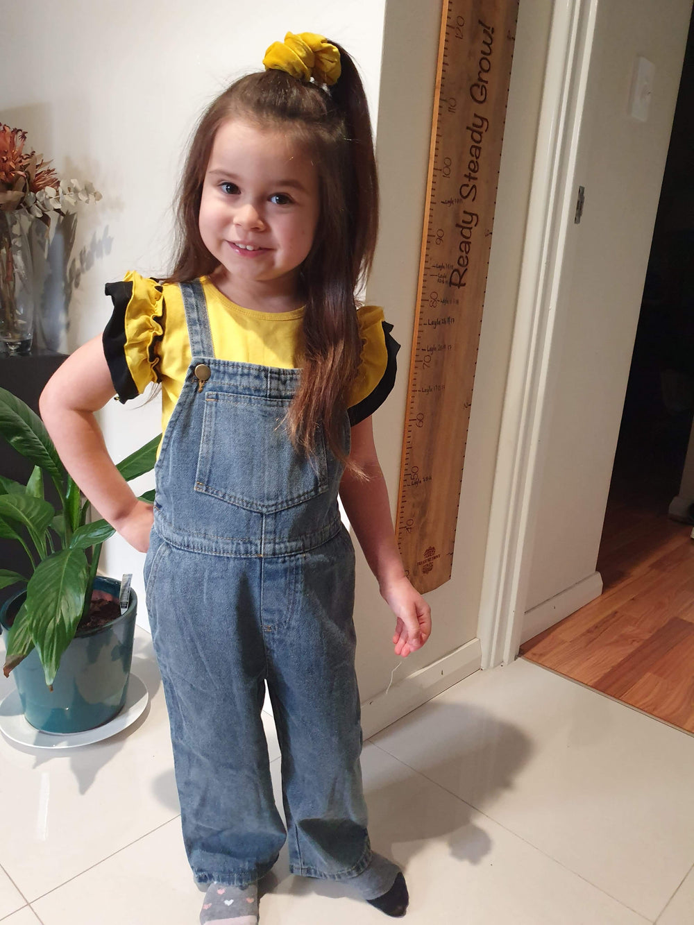 Be sassy in these denim overalls! Has 2 pockets and a waist pocket for all the treasures they can find! Feature two buttons on the straps to allow for adjustment.